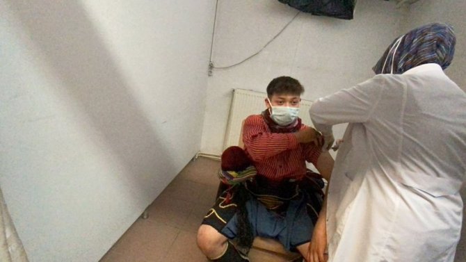 Afyonkarahisar'ın Bolvadin ilçesinde halk oyunları ekibi, yöresel kıyafetlerini giyerek hastaneye aşı olmaya geldiler. Halk oyunları ekibi bir yandan aşılarını yaptırırken bir yandan da vatandaşları aşı olmaya davet etti.