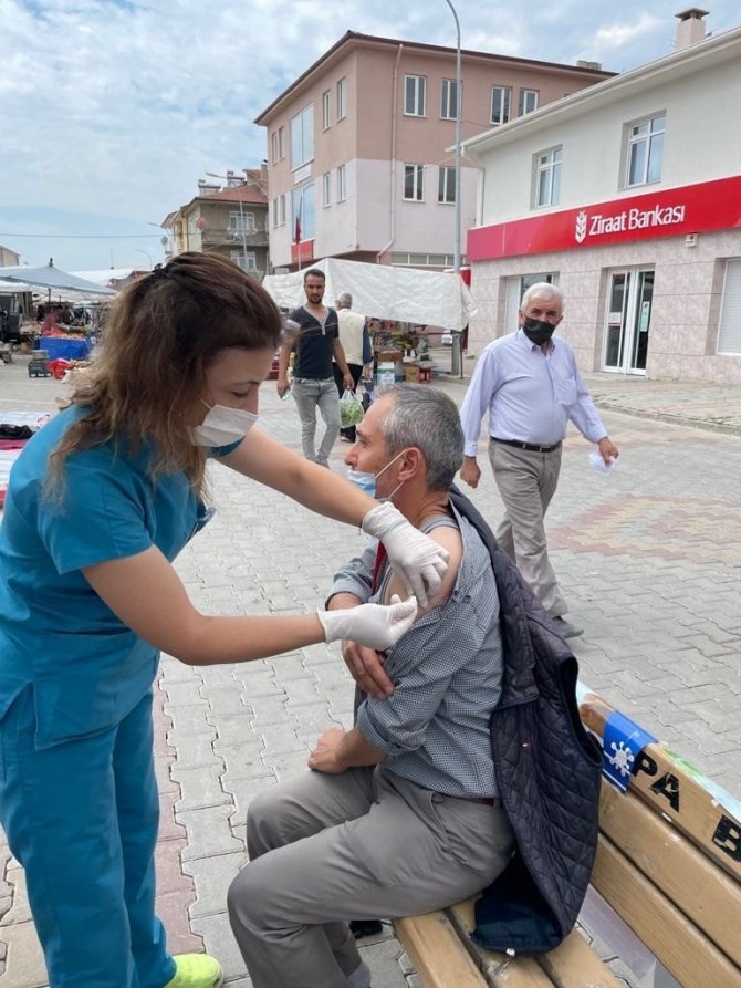 Kütahya'nın Aslanapa ilçesinde mobil ekipler tarafından halk pazarında (Covid-19) aşısı yapıldığı bildirildi.
