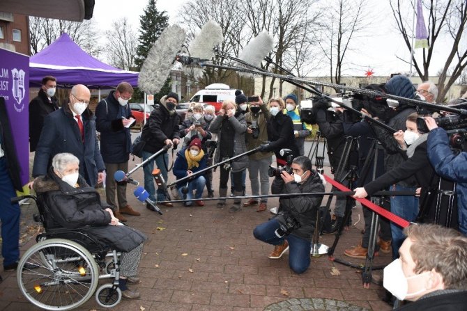 Aşının yapıldığı bakımevinde Hamburg Büyükşehir Belediye Başkanı Dr. Peter Tschentscher ile Hamburg Sağlık Senatörü Dr. Melanie Leonhard da hazır bulundu. Dr. Tschentscher yaptığı açıklamada, korona virüsle etkin mücadelede aşının dönüm noktası olacağını belirterek, "Koronaya karşı korunup salgını atlatabileceğiz. Aşı dün geldi çok dikkatli kullanmamız lazım. Doktor muayenehanelerinde aşı vurulmayacak. Özel eğitimli kişiler aşı vurabilecek" dedi.
