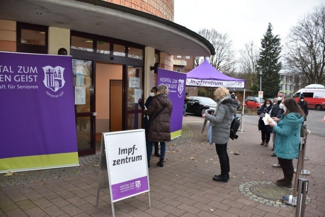 Hamburg'daki bakımevinde ilk günde hasta ve çalışanlardan oluşan toplam 500 kişiye aşı yapıldı. Mobil aşı ekibi 3 gün boyunca günde 500 kişiye aşı yapılacağını açıkladı. Ocak sonuna kadar tüm yaşlı bakımevlerinin aşılarının tamamlanması planlanıyor.