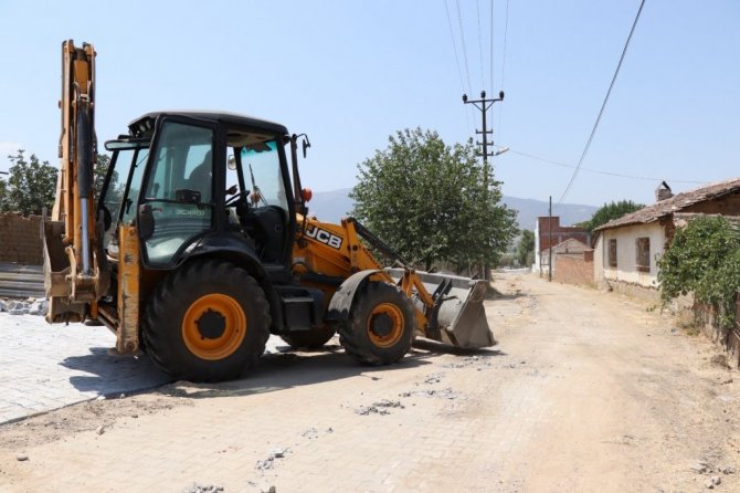 Nazilli Belediyesi ekipleri, Hamidiye Mahallesi'nde yol genişletme, temizlik ve parke taşı döşeme çalışmalarına başladı.
