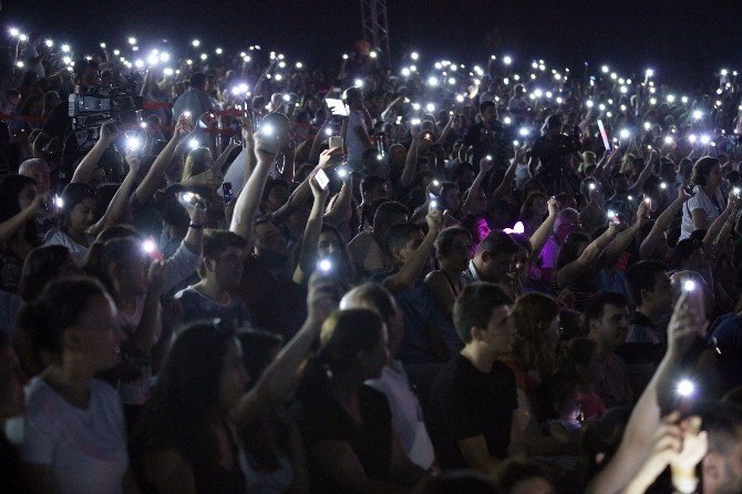 Müzikseverler, konser boyunca Hande Yener’i cep telefonuyla görüntülerken, Yener’de bir ara sahneye cep telefonuyla çıkarak selfie çekti ve kendisini izleyenleri görüntüledi.