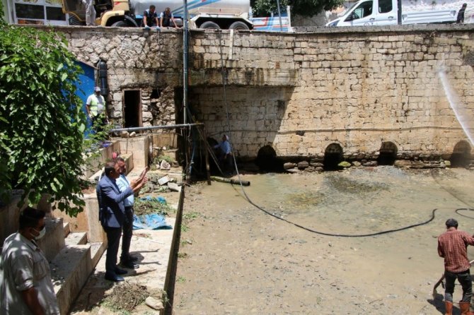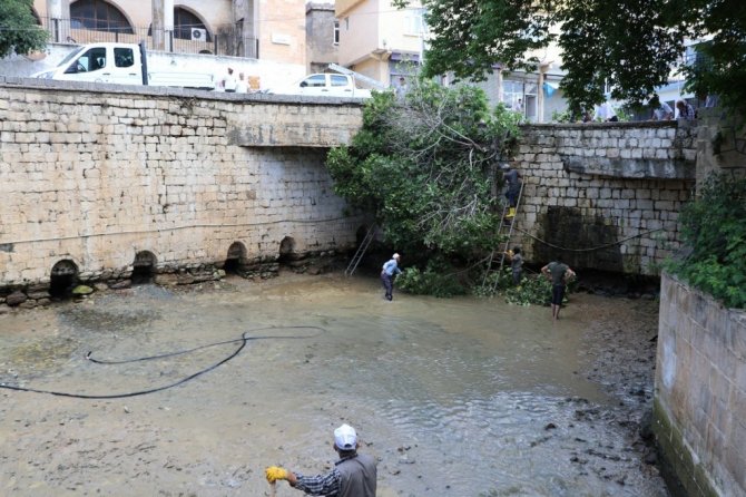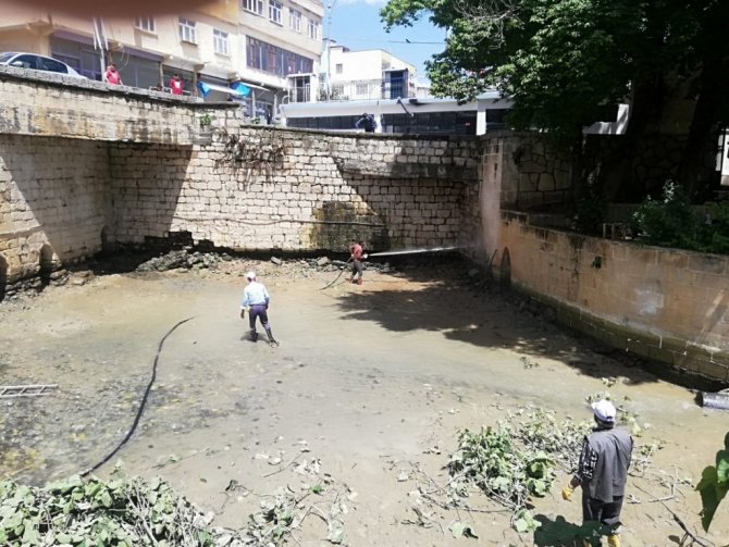 Diyarbakır'ın Hani İlçe Belediyesi, ilçede doğal su kaynağı olan Ayn-Kebir Suyu'nun geçtiği merkez Dereli Mahallesindeki Ayn-Kebir Parkında temizlik çalışması...