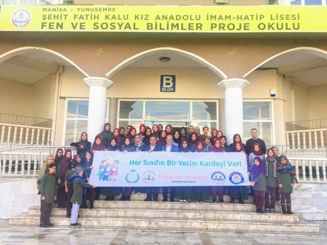 Projeye destek veren Manisa’nın Yunusemre ilçesindeki Şehit Fatih Kalu Kız Anadolu İmam Hatip Lisesi öğrencileri ailelerinin kendilerine verdikleri okul harçlıklarını sınıflarındaki kumbaralara atarak biriktirdi. Proje aracılığıyla yetim kardeşlerine ulaşmayı amaçladıklarını söyleyen öğrenciler harçlıklarıyla doldurdukları kumbaraları teslim etti. Toplanan paralar İHH’nin yetim hesabına okul ve sınıf isimleri belirtilerek yatırıldı.