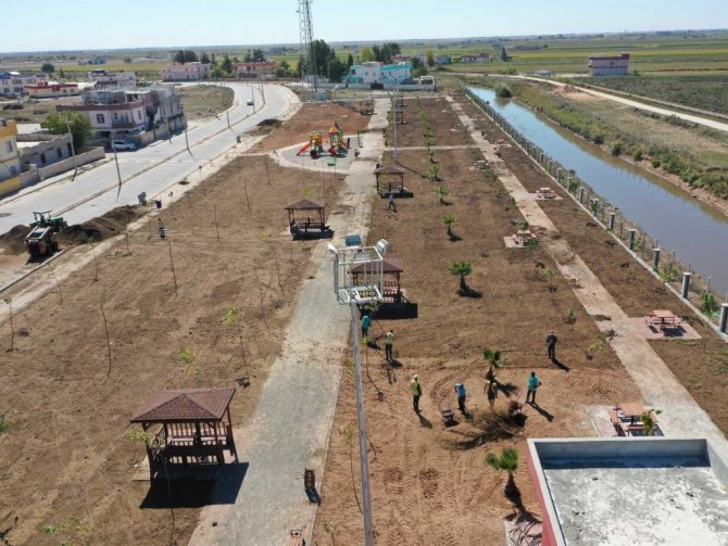 Her yıl binlerce yerli ve yabancı turistin ziyaret ettiği kümbet evleri ile ünlü Harran ilçesinde Şanlıurfa Büyükşehir Belediyesi tarafından yapılan 30 bin metrekarelik yeşil alana sahip Harran Kent Parkında sona yaklaşıldı. Harran Kent Parkında ağaçlandırma, çevre düzenlemesi ve ışıklandırma çalışmalarını tamamlayan Şanlıurfa Büyükşehir Belediyesi Park ve Bahçeler Daire Başkanlığına bağlı ekipler alanda çimlendirme çalışmalarına başladı. Çim tohumu serpilen alanda daha sonra gübre serimi yapılarak çim tohumlarının daha çabuk ve gür bir şekilde filizlenmesi sağlanacak. Yaklaşık 20 gün sonunda Harran Kent Parkı sulama işlemleriyle de birlikte yemyeşil bir görünüme kavuşacak. Şanlıurfa Büyükşehir Belediyesi "Harran Kent Parkı" projesi içerisinde 7 bin metrelik Bisiklet Yolu, 2 adet çocuk oyun alanı, 7 adet çeşme, yürüyüş yolları, piknik alanları, fitness alanları, oturma bankları, kamelyalar ve WC çalışmalarını tamamladı. Ayrıca parkın yeşil alanlarının sulanması için sulama sistemi kuruldu.