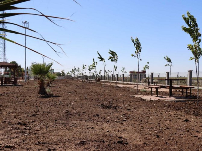 Şanlıurfa Büyükşehir Belediyesi'nin tarihi Harran ilçesinde ağaçlandırma ve çevre düzenleme çalışmasını tamamladığı Harran Kent Parkında çimlendirme çalışması başlatıldı.