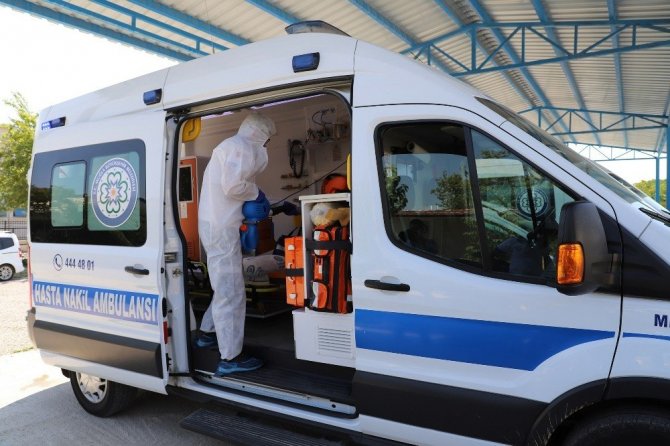 Muğla Büyükşehir Belediyesi, bünyesinde bulunan hasta nakil ambulanslarını her hasta naklinin ardından dezenfekte ediyor.