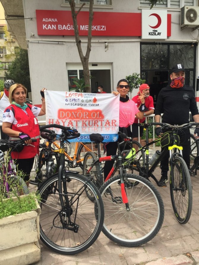 Adana'da bir grup bisikletli, Ramazan nedeniyle kan bağışının düşmesinden dolayı kan ihtiyacı duyan ve ilik nakli bekleyen hastalar için Türk Kızılay'a kan ve kök hücre bağışında bulundu.