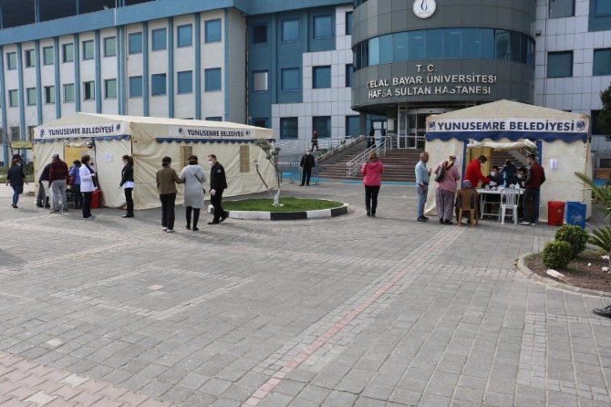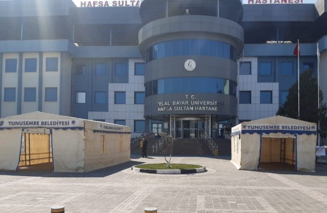 Yunusemre Belediyesi, korona virüse (Covid-19) karşı alınan önlemler kapsamında Manisa Celal Bayar Üniversitesi Hafsa Sultan Hastanesi Bahçesi’ne çadır kurdu. Kurulan çadırlarda hastaların ilk kontrollerinin yapılacağı ve gerekli görülmesi halinde ilgili birimlere yönlendirileceği öğrenildi. Korona virüs konusunda şüpheli görülen hastalar ise Manisa Şehir Hastanesi ve Merkezefendi Devlet Hastanesine sevk edilecek.