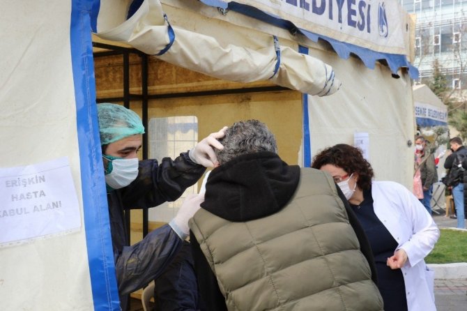 Hastaların ilk kontrolleri çadırlarda yapılıyor
