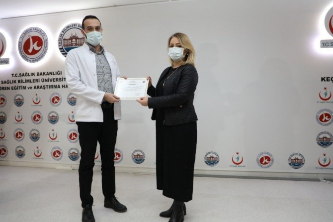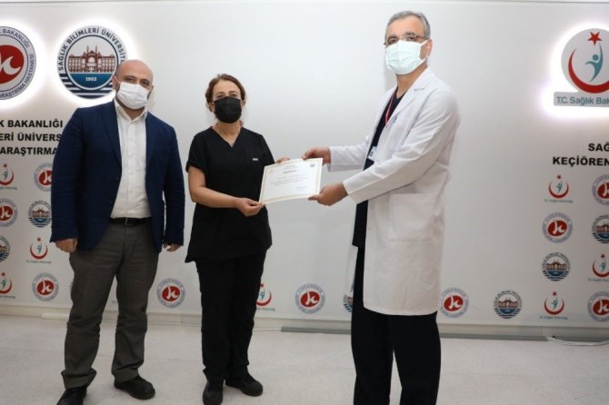 Keçiören Eğitim ve Araştırma Hastanesi'nde korona virüsle mücadelede gösterilen emek ve özveriden dolayı birim ve kliniklere teşekkür belgesi takdim edildi.