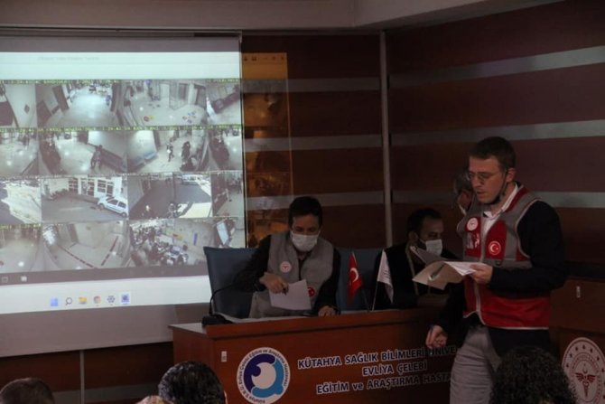 Kütahya Evliya Çelebi Eğitim ve Araştırma Hastanesi'nde Afet ve Acil Durum Planı (HAP) kapsamında masabaşı tatbikatı yapıldı.