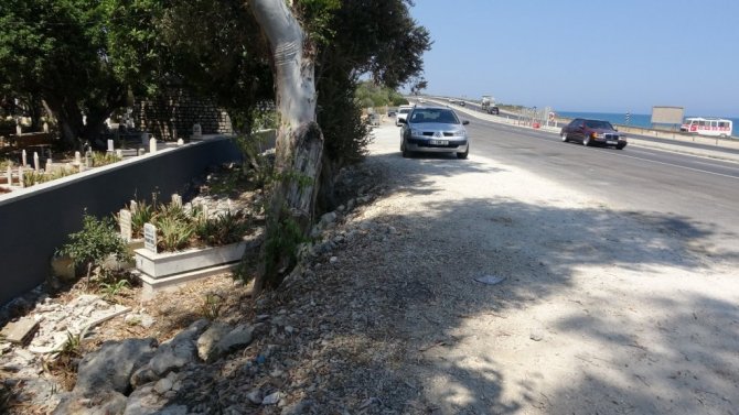 Mersin'de D-400 karayolu kenarında kalan Paşa Türbesi Mezarlığı'na yeni çekilen istinat duvarı nedeniyle dışarda kalan bazı kabirler, yapılan hatadan...