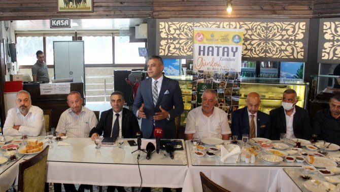 Antakya ilçesinde bir restoranda düzenlenen tanıtım toplantısına, İstanbul Hatay Dernekler Federasyonu Başkanı Hüseyin Yılmazer, yönetim kurulu üyeleri ve basın mensupları katıldı.