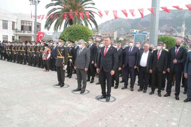 Cumhuriyet Meydanı'nda düzenlenen törende Hatay Valiliği, Garnizon Komutanlığı ve Hatay Büyükşehir Belediyesi çelenkleri Atatürk Anıtı'na sunuldu.