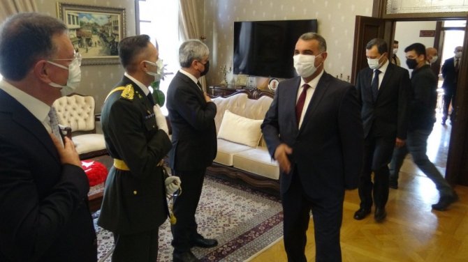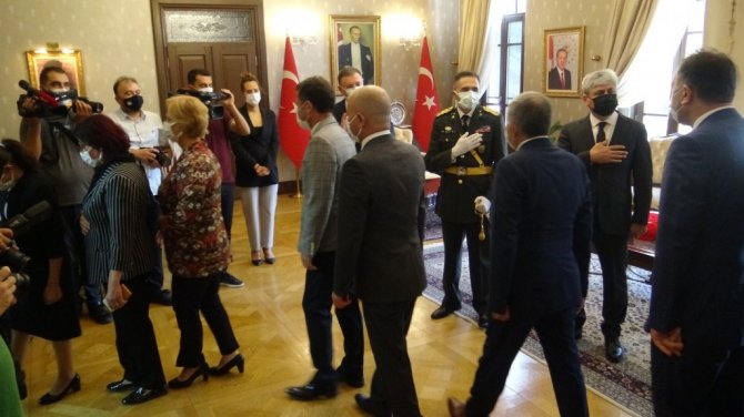 Çelenk sunma programının ardından Hatay Valisi Rahmi Doğan, Garnizon Komutanı Tayfun Çağın ve Hatay Büyükşehir Belediye Başkanı Lütfü Savaş, Hatay Valiliği'ndeki tebriklerin kabul etti.