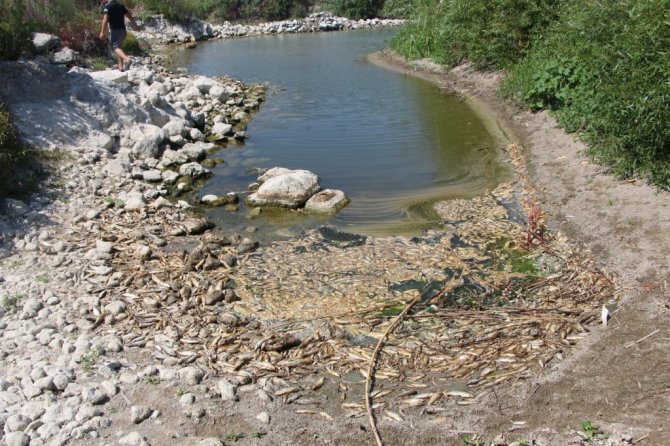 Hatay'da, Asi Nehri'nde suların çekilmesiyle birlikte çok sayıda balık telef oldu.