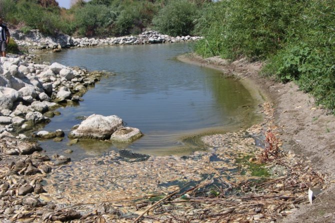 Merkez Antakya ilçesi, Üzümdalı Mahallesi'nden geçen Asi Nehri'nde su seviyesinin düşmesiyle çok sayıda balık telef olup kıyıya vurdu.