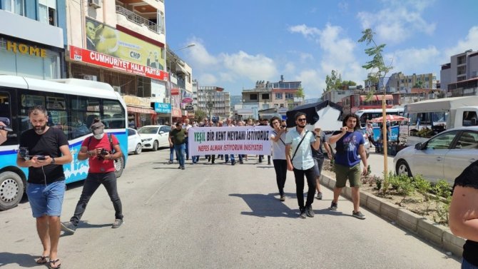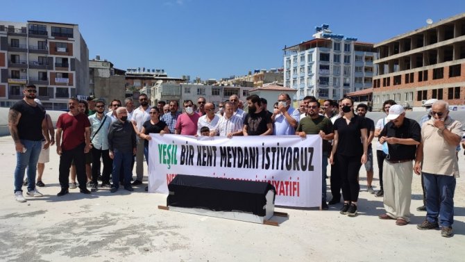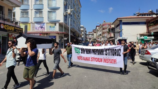 Hızla betonlaşan ilçe merkezindeki yeşil alanların artırılmasını isteyen Nefes Almak İstiyorum İnisiyatifi, kent merkezinin betonlaşmasına tabutlu tepki gösterdi.