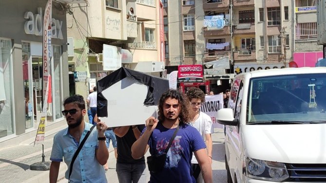 Hatay'ın Samandağ ilçesinde çarşı merkezindeki betonlaşmaya karşı tabutlu eylem yapıldı.