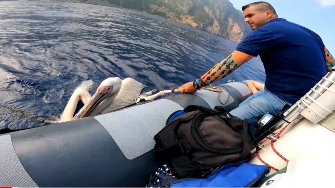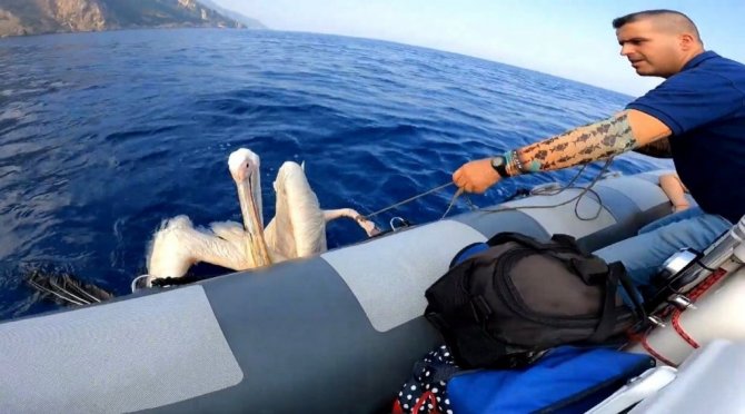 Denizde ailesi ile botla gezen Adem Erkol, ayağına ip dolanmış ve kanadı kırık olan pelikanın yardımına koştu. Pelikanı kurtaran Erkol, Sahil Güvenlik ekiplerine haber verdi. Olay yerine gelen Sahil Güvenlik ekipleri, pelikanı teslim aldıktan sonra Doğa Koruma ve Milli Parklar ekiplerine teslim etti.