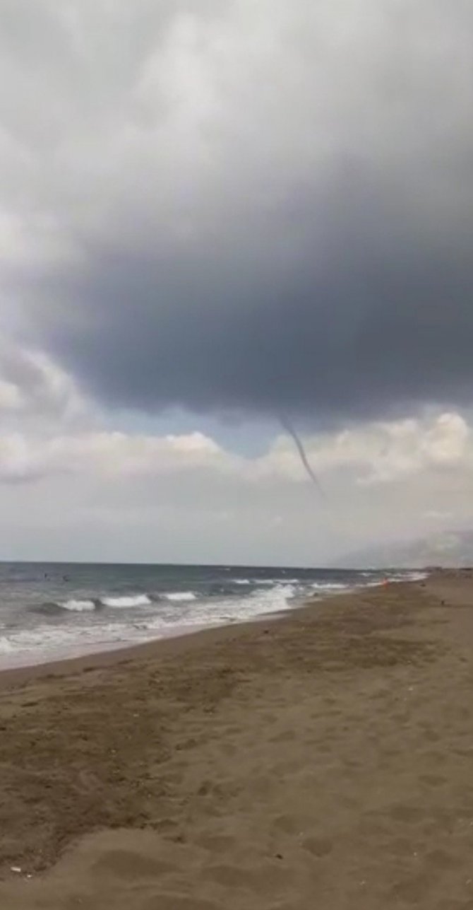 Hatay'ın Samandağ ilçesinde denizde çıkan hortum korkulu anlar yaşattı.