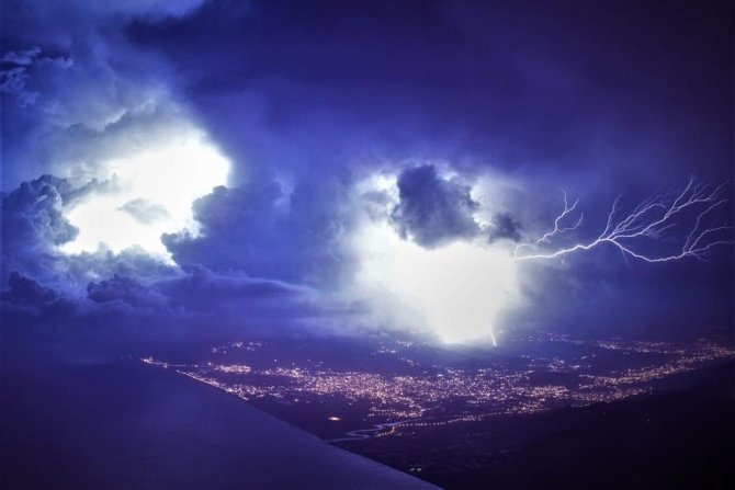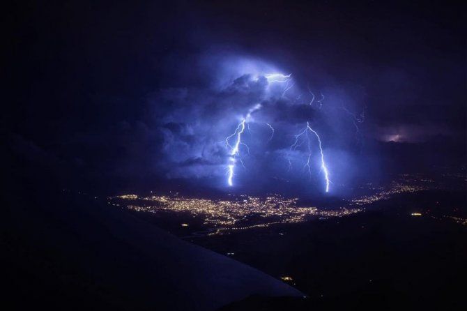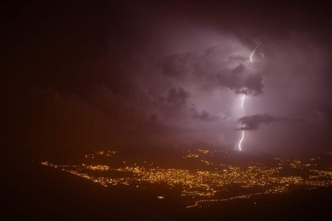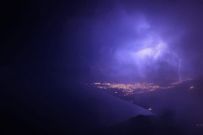 Kentin üzerinde birbiri ardına çakan şimşekler geceyi adeta gündüze çevirdi. Şimşeklerle beraber gelen yıldırım düşmeleri de yaşandı.