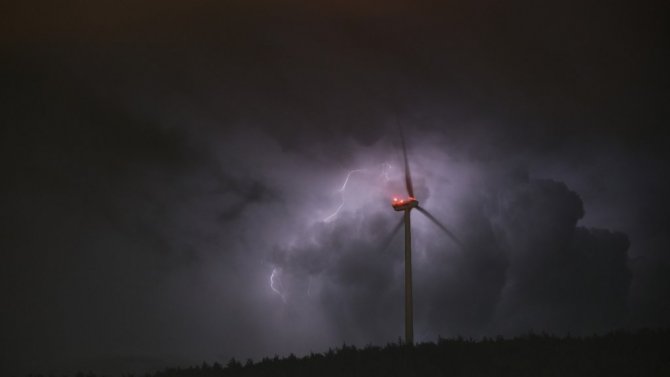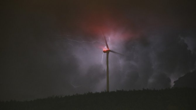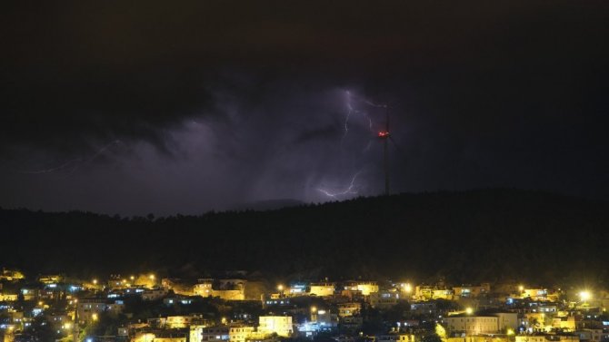 Hatay'da şimşekler rüzgar gülleri ile kartpostallık manzara oluşturdu.