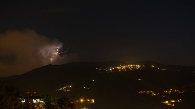 Hatay'da akşam saatlerinden itibaren etkisini gösteren şimşekler birçok ilçeden izlendi.