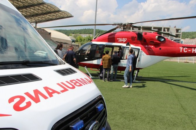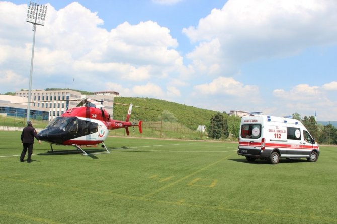 DÜZCE(İHA) – TEM otoyolu Düzce kesiminde meydana gelen trafik kazasında yaralanan 52 yaşındaki kadın hava ambulansı ile Ankara'ya sevk edildi.