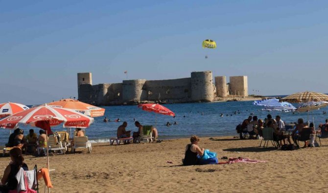 Erdemli'de ekim ayı olmasına rağmen sahillerin yaz günlerini andıran canlılığı dikkat çekti. Uygun hava şartlarının tarihi turistik Kızkalesi'ne ilgiyi arttırdığını ifade eden turizmciler, sezonun uzamasından da memnun. Kızkalesi Turizm ve Kültür Derneği Başkanı Hüseyin Çalışkan, turizm sezonunun bu yıl turizmcisinden esnafına herkes için olağanüstü güzel geçtiğini, bölgede bu sezon 4-5 bin yatak kapasitesiyle hizmet verildiğini söyledi. Çalışkan, "Burada turizm kasım ayının sonuna kadar devam eder. Top oynayanlar var, denize girenler var, sahilde yürüyüş yapanlar var. Sahil dolu, mükemmel bir güneş var. Şu an 33 derece sıcaklık var. Daha ne istiyoruz, deniz sıcaklığı 26-27 derece. Sezonum da güzel geçti, suyumuz da, havamız da güzel. Biz çevre illerdeki dostları, arkadaşları, seyahat etmek isteyen, denize girmek isteyen bütün insanları Kızkalesi'ne davet ediyoruz" dedi.