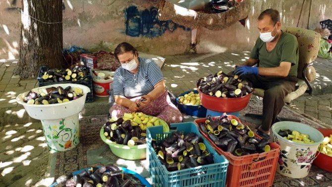70 yıla yaklaşan kurutma işlemi, 3. kuşakla dünyaya açılınca mahallelinin de en büyük gelir kaynakları arasında yer alıyor. Oyma ve kurutma işlemi yaklaşık 500 aileye de gelir sağlıyor. Dede Abdullah Gandak ile başlatılan patlıcanın oyularak kurutulması işleminin ağabeyi Abdullah Karaefe ve kendi girişimleri ile ününün dünyayı aştığını ifade eden işletme sahibi Turgay Karaefe, "Patlıcanları kurutmak için kullandığımız alan patlıcan vadisi olarak geçer. Burası nemin, rutubetin az olduğu bir bölgedir. Bu bölgede biz tamamen oyma kurutma işi yaparız. 500 eve yakın da çalışanımız olur. Kuruttuğumuz patlıcan, biber, bamya, fasulye, kabak, kapya biberi gibi yaz aylarında yetiştirdiğimiz ürünleri, Türk kültürünün olduğu bütün mutfaklara, ulaşabildiğimiz kutuplar hariç her ülkeye, her bölgeye, her mutfağa ulaştırıyoruz. 3 ile 6 ay süren kurutma ve işleme sezonunda da mahalle sakinlerine önemli gelir imkanı sağlanıyor" dedi.