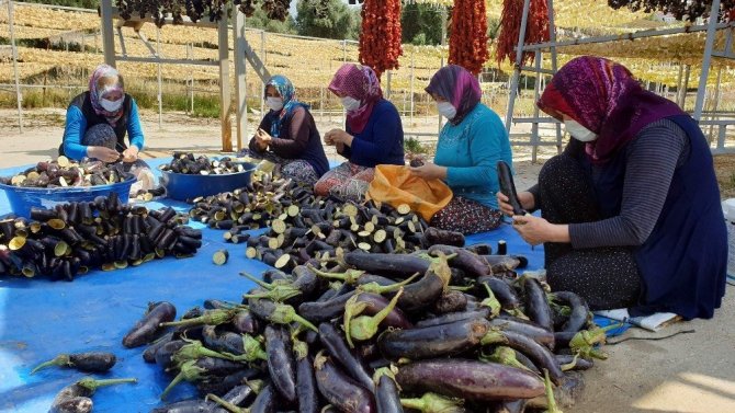 Ünü Türkiye’yi aşan mahallede yollardan bahçe ve çatılara kadar her yer patlıcan, biber, kabak gibi kurutulmaya bırakılan yaz sebzeleri ile dolu. Patlıcan vadisi olarak bilinen Aydın’ın Nazilli ilçesindeki Yıldıztepe Mahallesi’nde kurutulan patlıcanlar, dünya mutfaklarının da vazgeçilmezi haline gelmiş durumda.