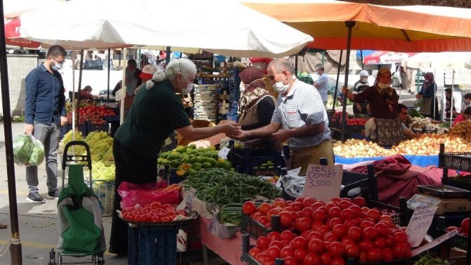 Uşak’ta havaların mevsim normallerine dönüp soğumasıyla semt pazarlarında fiyat etiketlerine de yansıdı. Semt pazarlarında meyve ve sebzelerde bolluk yaşanırken fiyatlar düşük seviyelerde kaldı. Fiyatlarda her ne kadar düşüş yaşansa da, vatandaşların sosyal mesafe kuralı nedeniyle semt pazarlarını tercih etmedi. Muz, incir ve şeftalinin 10 TL’den satıldığı pazarlarda elma 2-4 TL, mandalina 4 TL, armut 5 TL’den alıcı bulurken sebzelerden soğan ve patates 2 TL ve limon 5 TL’den tezgahlarda yer buldu. Havaların soğumasının pazarlarda fazla bir farklılık göstermediğini aktaran p azar esnaflarından Ali Akbulut, fiyatların geçen ay ki fiyatlarla aşırı farklı olmadığını belirtti. Akbulut, “Sadece bazı ürün geçişlerinde fiyat farklılığı var. Bizim pazarımızda genelde bolluk olur, çeşitler bol olur. Köylü ve esnaf iç içe olduğu için vatandaş aradığı mahsulü istediği fiyat aralığında bulma olanağına sahiptir. Vatandaşların pazara ilgisi çok yoğun değil. Büyük ihtimalle bu da hastalıkla alakalı” dedi. Bir başka Pazar esnafı olan Mehmet Aydoğan ise, Uşak’ın merkezi bir şehir olduğu için üretim bölgesi olduğunu ve en kaliteli meyve ve sebzelerin Uşak’ta bulunduğunu ifade etti.