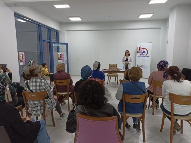 Düzce İl Sağlık Müdürlüğü tarafından Kasım ayı meme kanseri farkındalık ayı dolayısıyla bir dizi etkinlik hayata geçirildi. Bu kapsamda İl Sağlık Müdürlüğü Halk Sağlığı Hizmetleri Başkanlığı Kanser Erken Teşhis Tarama ve Eğitim birim sorumlusu Dr. Merve Öztürk tarafından Düzce Belediyesi Meslek Edindirme Kursları BELMEK kursiyerlerine meme kanseri anlatıldı. Verilen eğitimlerde; meme kanserinde erken teşhisin önemi, kadınlarımızda meme kanserinin risk faktörleri, belirtileri, tanı ve tedavi yöntemleri, kanserden korunma yolları, sağlıklı yaşam koşullarına yönlendirme konularında bilgilendirmelerde bulunuldu.