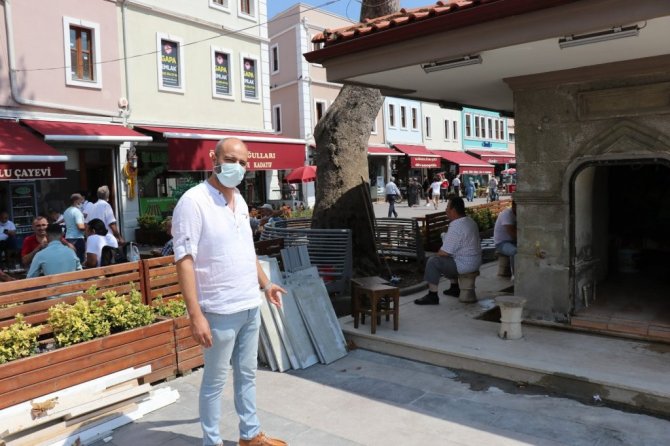 Uzun yıllardır Orhan Camii çevresinde esnaflık yapan Abdulkadir Doğan, "Tarihle özdeşleşmiş olan bir şadırvan burası. Tadilat yapılabilir ama tamamı ile mermer döşenmesi veya üzerinin başka bir şey ile kaplanması yanlış bir şey. Çünkü tarihi bir doku. Tarihi yenilerken, yeni bir şey yapıyorsanız da aslına uygunu olması lazım. Tamamı ile kaplanması yanlış bir şey, cemaatin tepkisi de bu yönde olmuştur. Biz yıllardan beri burada esnafız. Daha öncesinde böyle bir şadırvanımız daha vardı, onun yanına bir şadırvan daha yapılarak üstünü kapladılar ve daha sonrasında tamamı ile yıkıldı. Yine aynı sorun olabilir, zaten üzerine kaplama olduğu takdirde tarihi özelliğini kaybediyor. Tarihi dokularımız zaten az, bunlara özen göstermemiz ve sahip çıkmamız lazım. Bu konuda da sahip çıkılmış diye düşünüyorum. Tadilat önemli ama tarihi dokusuna uygun yapılmalı, o zaman herhangi bir kimse burada buna karşı çıkmaz. Burada bu işlem kime sorularak veya kimin izni ile yapıldı o konu ile ilgili bilgimiz yok. Vatandaşın tepkisi üzerine mermerler kaldırıldı ve eski halinde şuanda şadırvan" dedi.