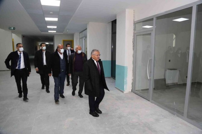 Kayseri Büyükşehir Belediye Başkanı Dr. Memduh Büyükkılıç, tamamlanma aşamasına gelen Ahmet-İlmiye Büyükkılıç okul inşaatında incelemelerde bulundu.