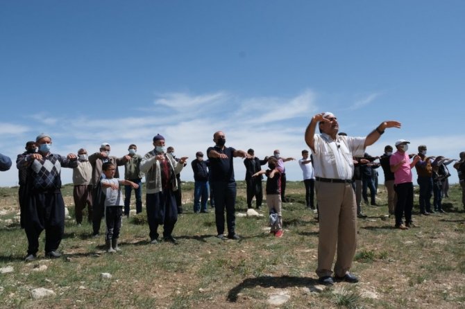 Havaların kurak gitmesi sebebiyle ilçeye bağlı Toslu Yaylası'nda bir araya gelen hayvan yetiştiricileri, İlçe Müftüsü Mustafa Öztürk ile birlikte yağmur duasına çıktı.