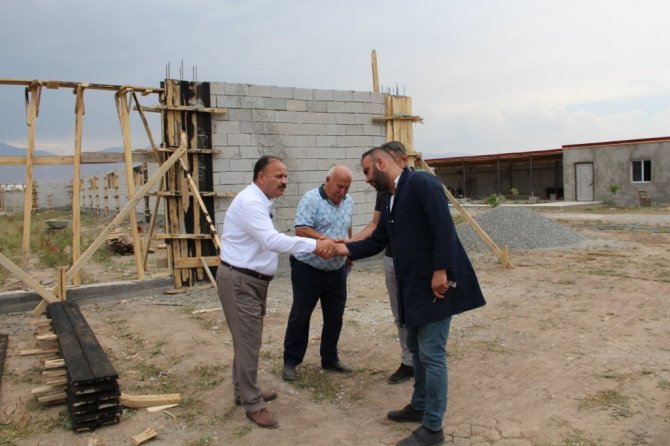 Iğdır merkez Alikamerli Mahallesi kırsalında yapımı devam eden büyükbaş hayvancılık işletmesi ahır çalışmaları yerinde incelendi.