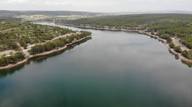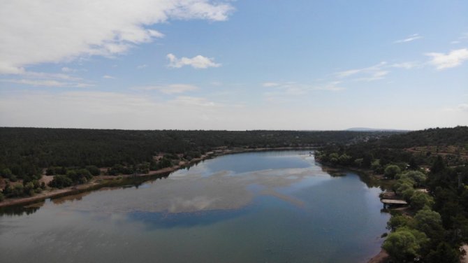 Eskişehir'de doğa tutkunlarının uğrak noktası olan Musaözü Göleti'nin su seviyesi, haziran ayındaki yağışlar sebebi ile ciddi ölçüde arttı. Su seviyesinin yükseldiği gölet, drone ile havadan görüntülendi.