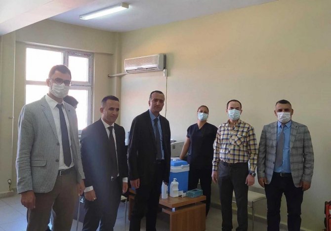 Diyarbakır'ın Hazro ilçesinde 12 yaşının üstü öğrenciler Hazro Kaymakamı ve Belediye Başkan Vekili Salih Sak'ın öncülüğünde aşılama çalışmaları başladı.