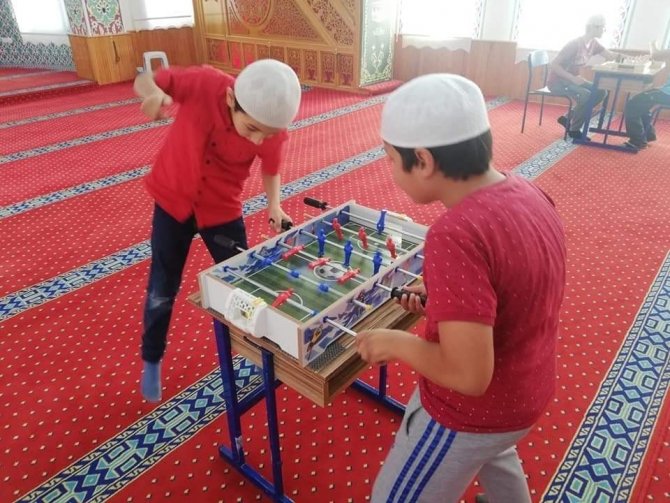 Kütahya’nın Aslanapa ilçesine bağlı Esenköy’de hafızlık öğrencileri, hem eğitim görüyor, hem de masa tenisi, satranç ve langırt oynayarak spor yapıyor.
