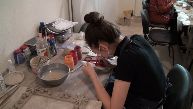 Açılan konak ile kurslara katılan kadınların hem rehabilite olduğunu hem de sosyal destek aldığını anlatan Seramik Eğitmeni Şaziye Ayku, "İl Özel İdaresi, Zafer Kalkınma Ajansı, Halk Eğitim ve Sosyal Hizmetler ile birlikte çalıştığımız bir proje. Burada ki amacımız kadınlarımıza sosyal hayata kazandırmak ve iş sahibi edindirmek. Onlara bir yol göstermek bir ışık olmak açıkçası. 17 Haziran itibari ile başlayan kurslarımız çini kursu, iğne oyası kursu, seramik kursu ve nakış kursu olarak devam ediyor. 2 psikoloğumuz var. Haftada 2 gün gelip bize ve öğrencilerimize yardımcı oluyorlar. Kurslarımızda 80 kadın kursiyerimiz var ve İş-Kur'dan destek alıyorlar. Öğrencilerimiz kurslarda çok istekliler bu da bizleri çok memnun ediyor. Projenin devamı bekleniyor. Konağımız atıl bir haldeyken restore edildi ve sanat merkezi haline getirildi. Bu konuda çok şanslıyız, Kütahya'nın bu konuda güzel bir merkeze sahip olduğunu düşünüyoruz. Projede desteği olan herkese teşekkür ederiz" şeklinde konuştu.