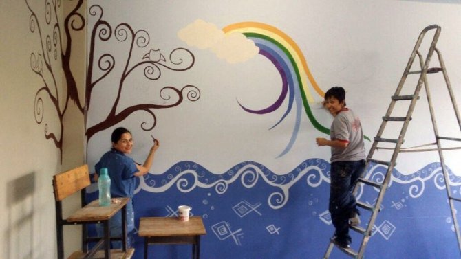 Klasik sıraların görüntüsünün çocuklar için çok uygun olmadığını ve sert malzemeden oluştuğunu belirten Aslı öğretmen, “Bu sene birinci sınıfları okutuyorum daha önceki sınıflarda öğrencilerimin çok fazla yere oturma isteği olduğunu gördüm. Örneğin düşen kalemini almak için yere eğiliyordu ve ben görene kadar kalkmıyordu. Daha özgür bir ortam oluşturmak istedim. Takla atsınlar, oynasınlar, zıplasınlar istedim. Türkiye’de bu tip sınıflardan da örnek alarak çalışmaya başladım. Önce sponsorlar bulduk. Yazın sınıfı boyadım, sponsorlar aracılığıyla sandalye, dolap, minderler aldık. Resim öğretmenimiz duvarlara resim çizdi” dedi.