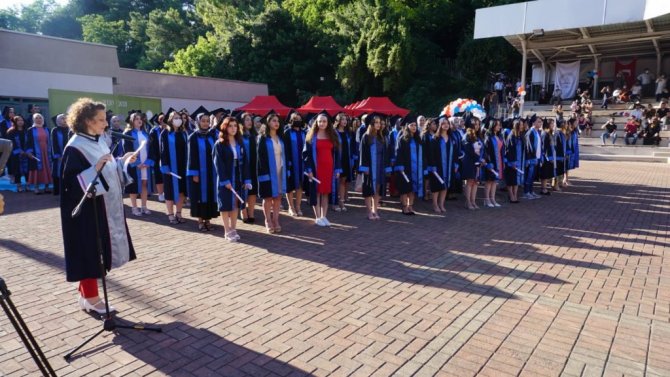 Bölümünü dereceyle bitiren öğrencilere başarı belgeleri ve hediyeleri takdim edilmesinin ardından Hemşirelik Bölümü birincisi Nazire Aslı Şahin fakülte kütüğüne isim plaketini çaktı. Mezun olan öğrencilere diplomaları verildikten sonra Hemşirelik Bölüm Başkanı Doç. Dr. Tülay Kuzlu Ayyıldız eşliğinde meslek andı okundu. Mezuniyetlerini coşkuyla keplerini havaya fırlatarak kutlayan mezun öğrenciler tören sonrasında aileleriyle birlikte fotoğraf çektirdi.