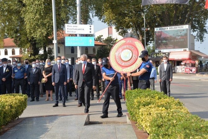 Kutlamalar kapsamında Hendek Cumhuriyet Meydanında çelenk sunma töreni gerçekleştirildi. Atatürk anıtına çelenk sunumunun yapılmasının ardından Saygı Duruşunda bulunuldu ve ardından İstiklal Marşı okundu. Günün anlam ve önemini belirten konuşmayı Hendek Askerlik Şubesi Başkanı Piyade Asteğmen Elman Koç yaparken, Hendek Atike Hanım Anadolu Lisesi öğrencilerinden Başak Özcan "Zafer Türküsü", Ecrisu Başar ise "Bir Bayrak Bizi Bekliyor" isimli şiirleri okudu. Program sunucusu olan Atike Hanım Anadolu Lisesi Edebiyat Öğretmeni Ümit Kavak tarafından ise Cumhurbaşkanı Recep Tayyip Erdoğan'ın kutlama mesajı okundu.