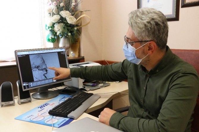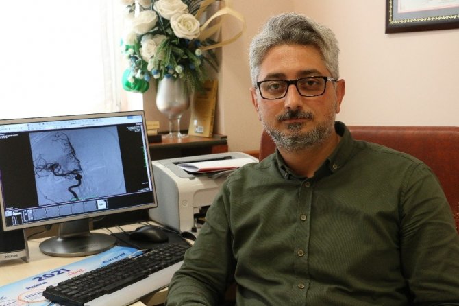 İnme hastalığının yaşla birlikte sıklığı artan bir hastalık olduğuna dikkat çeken Doç. Dr. Aytaç, "Dünyada her 6 saniyede bir kişi inme geçiriyor ve 60 dakikada bir kişi de inmeye bağlı ölüm görüyoruz. 70 yaş civarında binde 20 sıklıkla görülüyor. 45 yaş civarına kadar bu hastalığı görebiliyoruz. Yaş arttıkça sıklığı artıyor ama 20'li yaşlarda da görebiliyoruz. İnme hastalarına erken müdahale ile hastaların felç kalmasına veya ölmelerini engellemeye çalışıyoruz. Merkezimiz bünyesinde erken dönemde damar tıkanıklığıyla gelen hastalara hızlıca müdahale ediyoruz, hastayı hemen anjiyo ünitesine alıyoruz. Tıkalı beyin damarını tespit ettikten sonra o damarın açılmasını sağlıyoruz. Böylelikle hastaların felç kalmasını engelliyoruz ki inme, dünyada sakat bırakma ve engellilik konusunda birinci sırada yer alan en önemli hastalıklardan bir tanesidir ve dünyadaki ikinci en sık ölüm nedeni inmeye bağlı ölümler oluşturuyor. Merkezimiz de yaklaşık 2017 yılından beri bu bölgedeki hastalara hizmet vermekte. Bugüne kadar yaklaşık 500 anjiyo işlemi gerçekleştirdik ve yüzlerce hastanın hayatına dokunabilme imkanımız oldu. Sadece erken dönemde inme hastaları değil aynı zamanda inmeye neden olan şah damar tıkanıklığı olan hastalara da stent takarak hastaların uzun dönemli inme geçirmelerini veya daha ağır bir inme geçirmesini engelliyoruz" dedi.