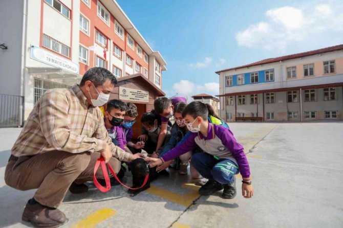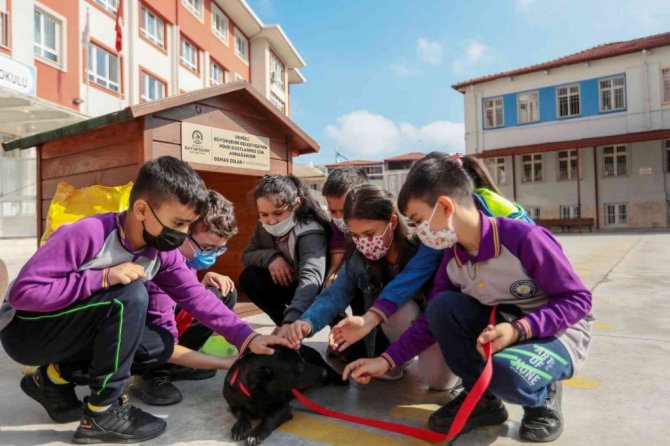 Köpekleri gören öğrenciler büyük sevinç yaşarken projeyle hayvan sevgisinin küçük yaşta aşılanması hedefleniyor.