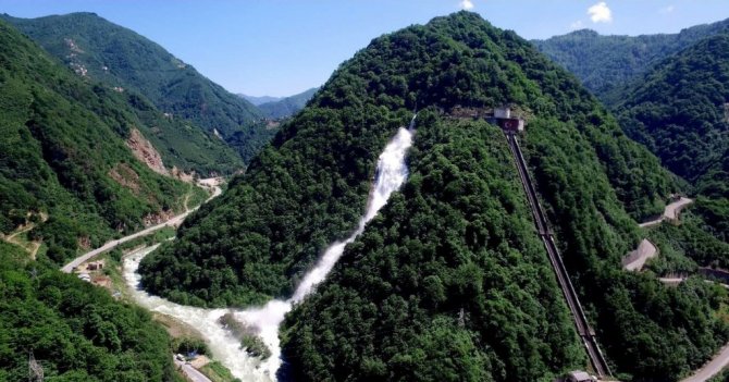 Giresun'un Doğankent ilçesinde HES'in oluşturduğu yapay şelale bu sene yaşanan kuraklık nedeniyle görsel şölene dönüşmedi.