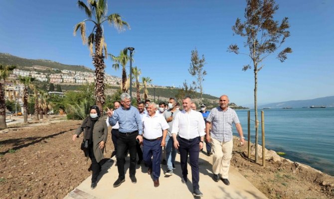 Mevcut parkın yeniden düzenlenmesi için bir çalışma başlattıklarını ve projenin de sona geldiğini dile getiren Başkan Büyükakın, "Körfez Belediyemizle birlikte buradaki parkımızın yenilenmesine karar verdik. İnşallah 30 Ağustos'ta da açılışını yapacağız. Kentimizin tüm sahillerinde buna benzer alanlar oluşturuyoruz. Tüm vatandaşlarımız gelsin, buralarda denizle buluşsun, ailecek keyifli bir vakit geçirsin. İşte bu nedenle Körfez'in tamamında Karamürsel'den Darıca'ya kadar tüm sahillerde benzer çalışmalar yürütüyoruz" diye konuştu.